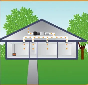 The moistureMASTER positive pressure input ventilation system can also be fitted with our inline 1500W Heater. This allows the same system to not only ventilate the home to prevent condensation but also take chill off the air.